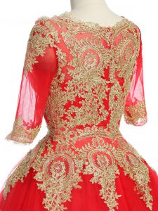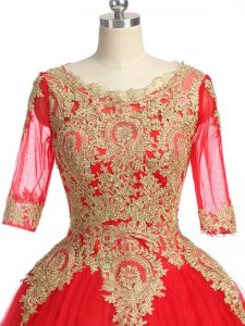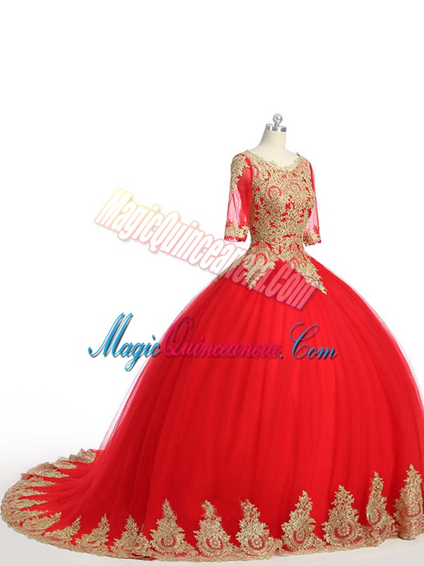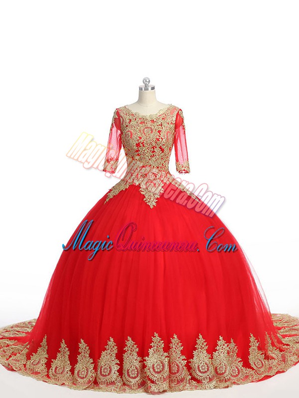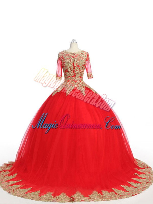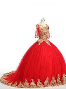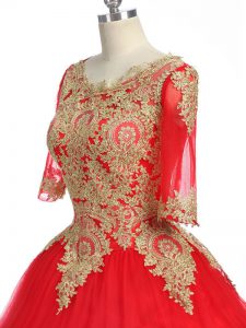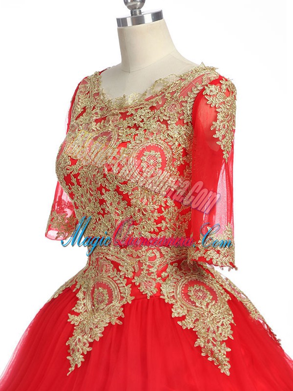 Exquisite Scoop Half Sleeves Tulle Quinceanera Dresses Lace and Appliques Brush Train Zipper