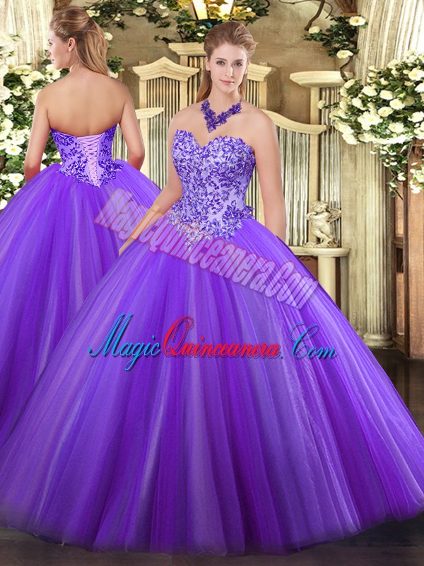 Exquisite Sleeveless Lace Up Floor Length Appliques Sweet 16 Quinceanera Dress