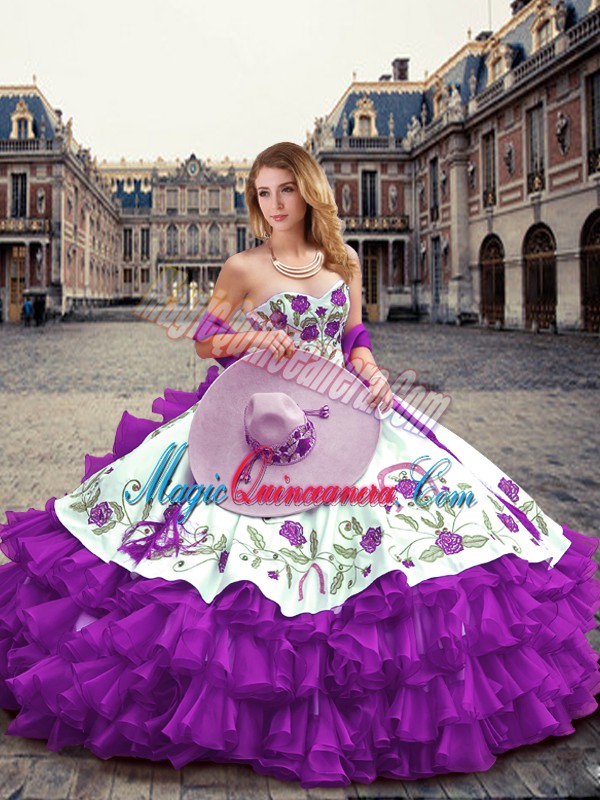 Exquisite Sleeveless Lace Up Floor Length Embroidery and Ruffled Layers Quinceanera Gown