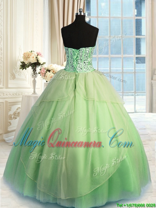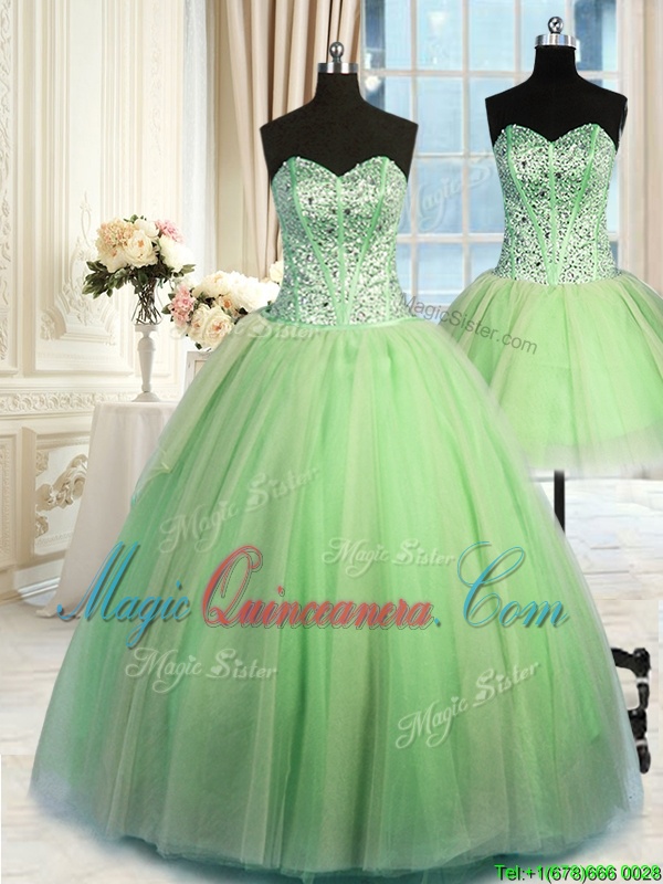 Exquisite Three Piece Lace Up Quinceanera Dress Beading and Ruching Sleeveless Floor Length