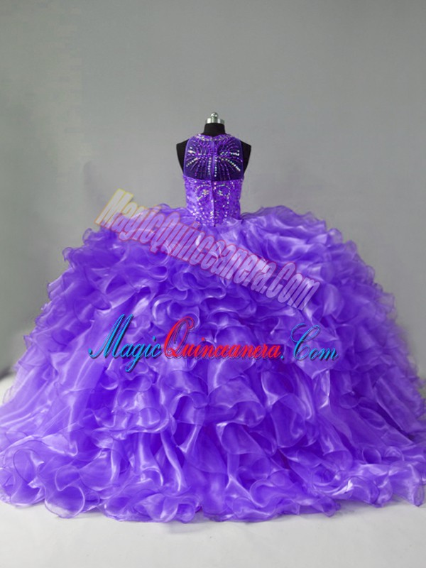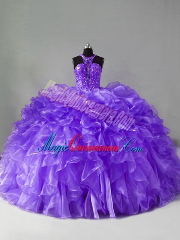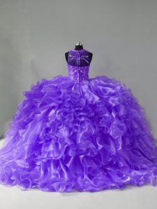 Exquisite Zipper Quinceanera Gown Lavender for Sweet 16 and Quinceanera with Beading and Ruffles Brush Train