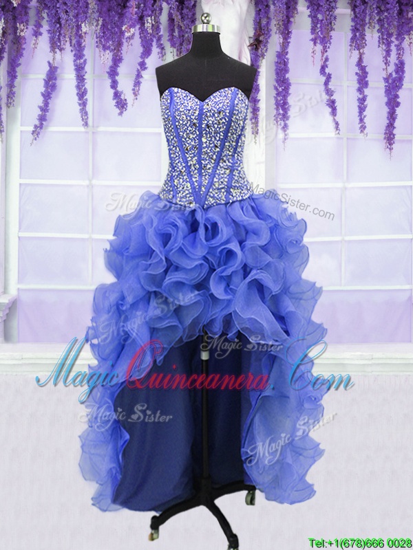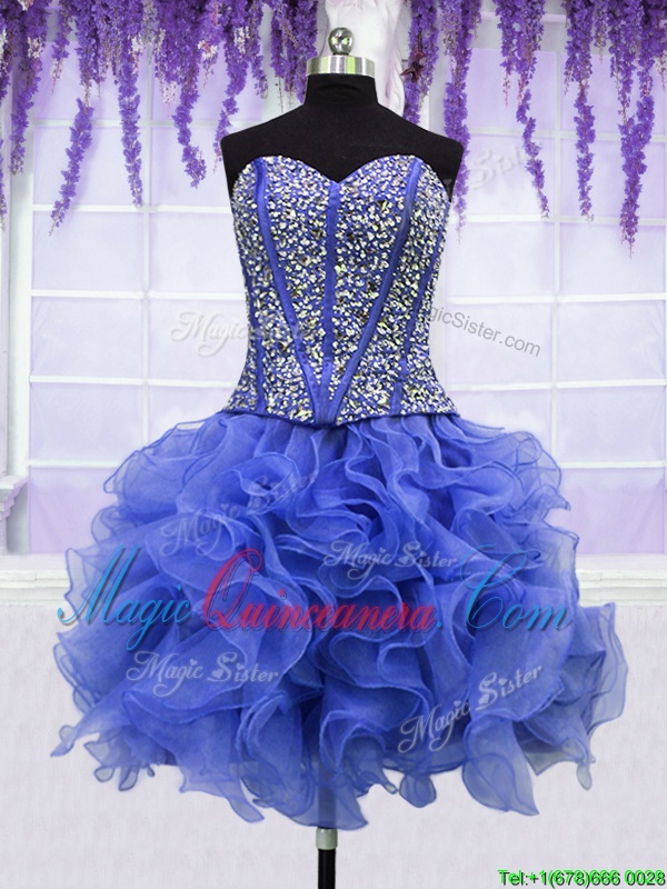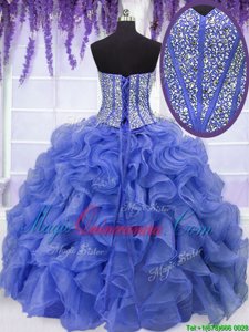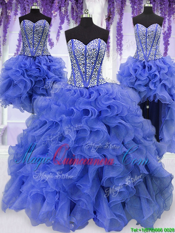 Extravagant Four Piece Sleeveless Lace Up Floor Length Ruffles and Sequins Quinceanera Dress