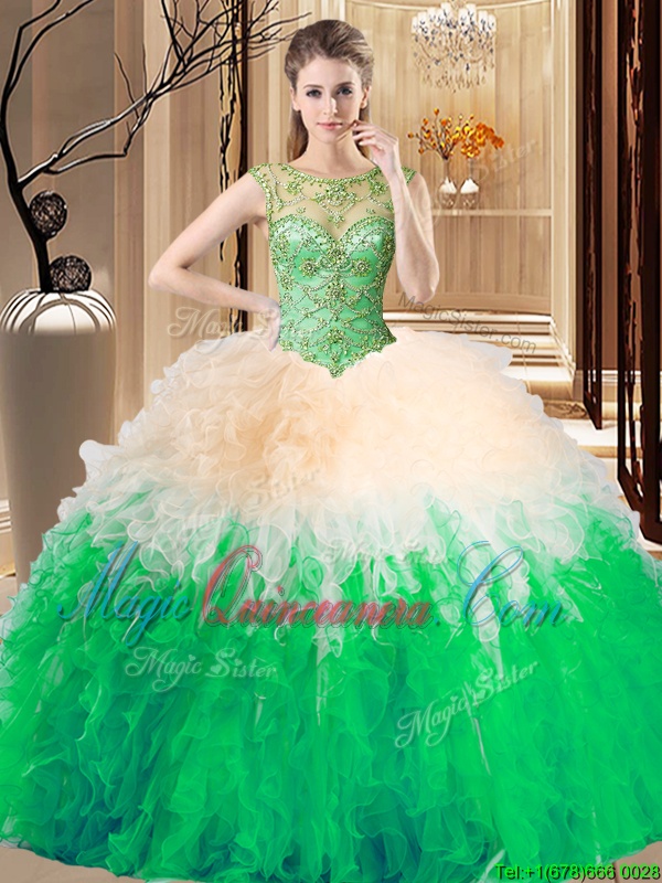 Extravagant Scoop Multi-color Tulle Lace Up Ball Gown Prom Dress Sleeveless Floor Length Beading