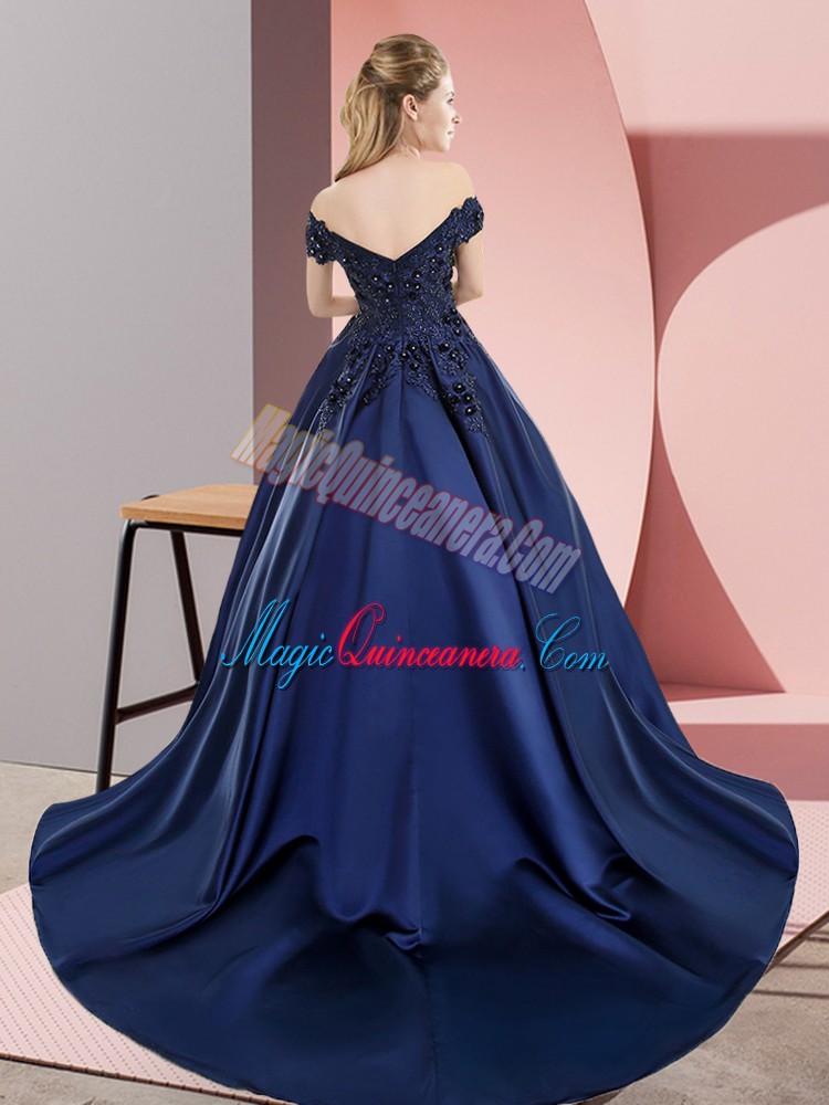 Extravagant Sleeveless Satin Court Train Zipper Quinceanera Dress in Brown with Lace
