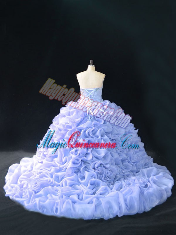 Eye-catching Ball Gowns Sleeveless Lavender Sweet 16 Dress Court Train Lace Up