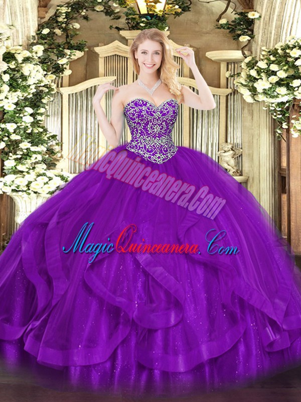 Eye-catching Floor Length Ball Gowns Sleeveless Eggplant Purple Sweet 16 Dresses Lace Up