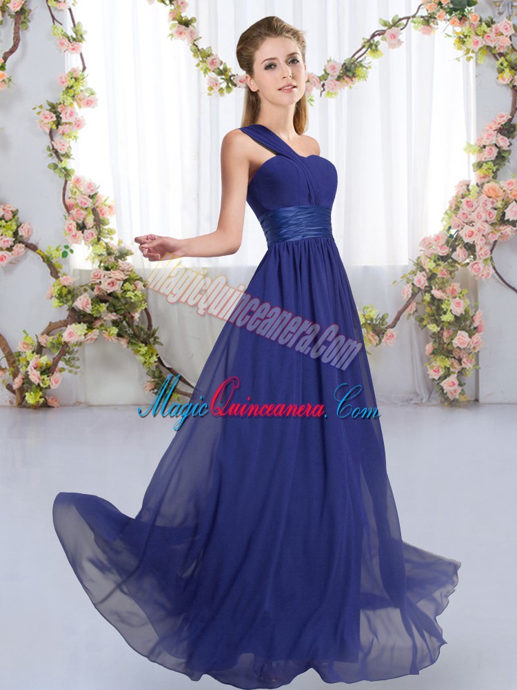 Eye-catching Floor Length Lace Up Vestidos de Damas Royal Blue for Wedding Party with Ruching