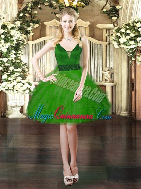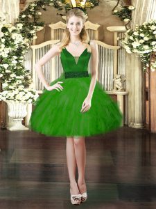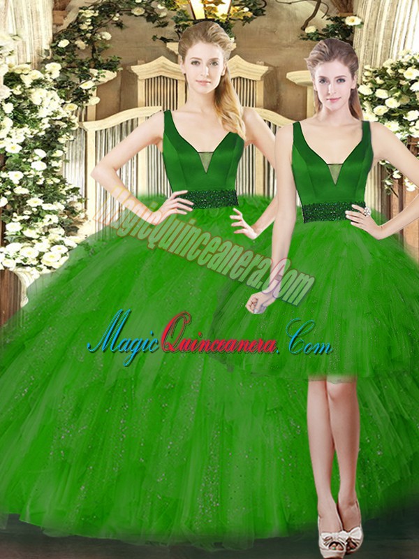 Eye-catching Green 15th Birthday Dress Military Ball and Sweet 16 and Quinceanera with Beading and Ruffles Straps Sleeveless Lace Up