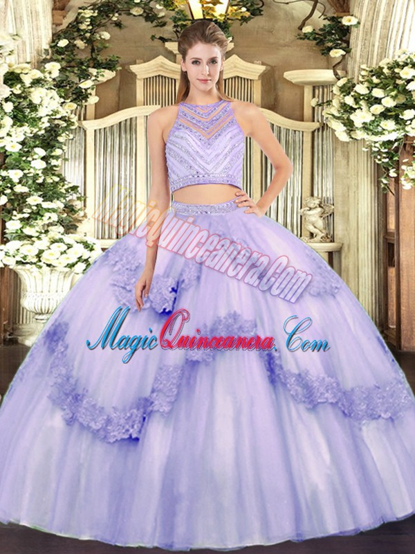 Eye-catching Lavender Quinceanera Dresses Military Ball and Sweet 16 and Quinceanera with Beading and Appliques Scoop Sleeveless Zipper
