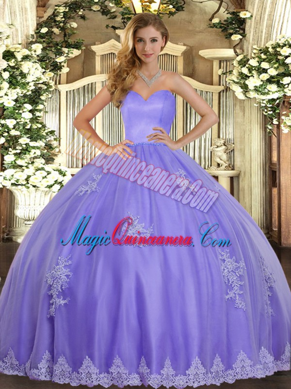 Eye-catching Lavender Sweetheart Neckline Beading and Appliques Quinceanera Gowns Sleeveless Lace Up