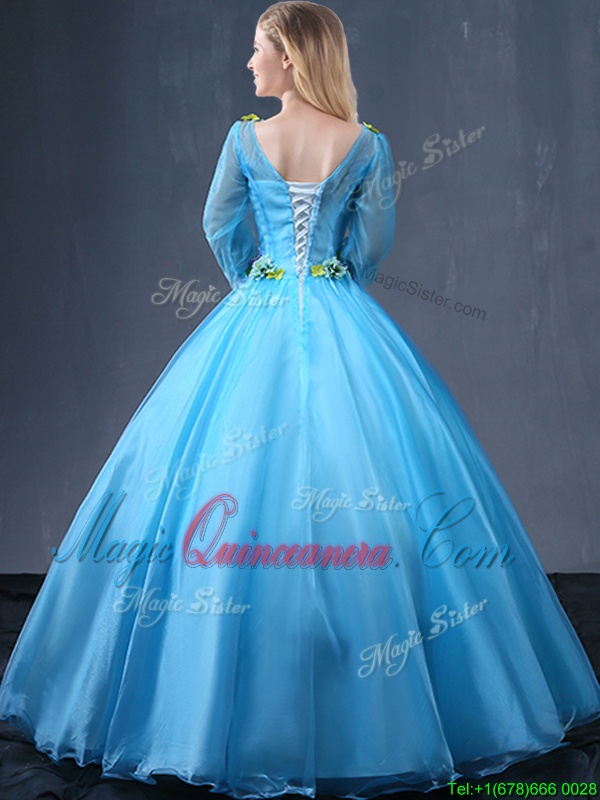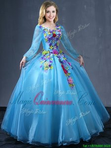 Eye-catching Long Sleeves Lace Up Floor Length Appliques 15th Birthday Dress