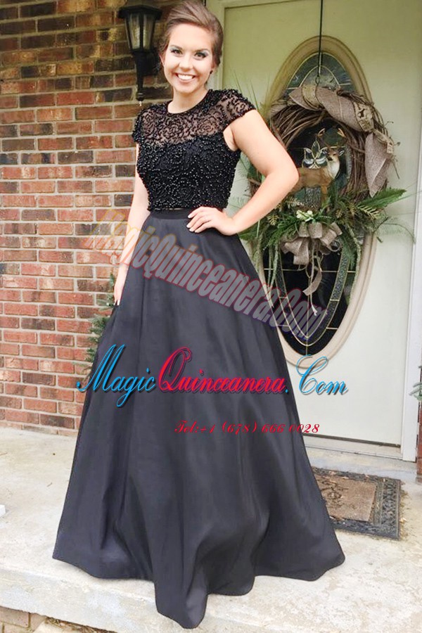 , Eye-catching Scoop Cap Sleeves Beading Backless Mother Of The Bride Dress