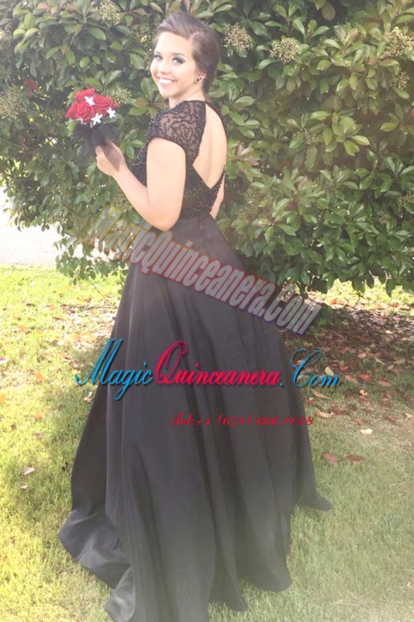 Eye-catching Scoop Cap Sleeves Beading Backless Mother Of The Bride Dress