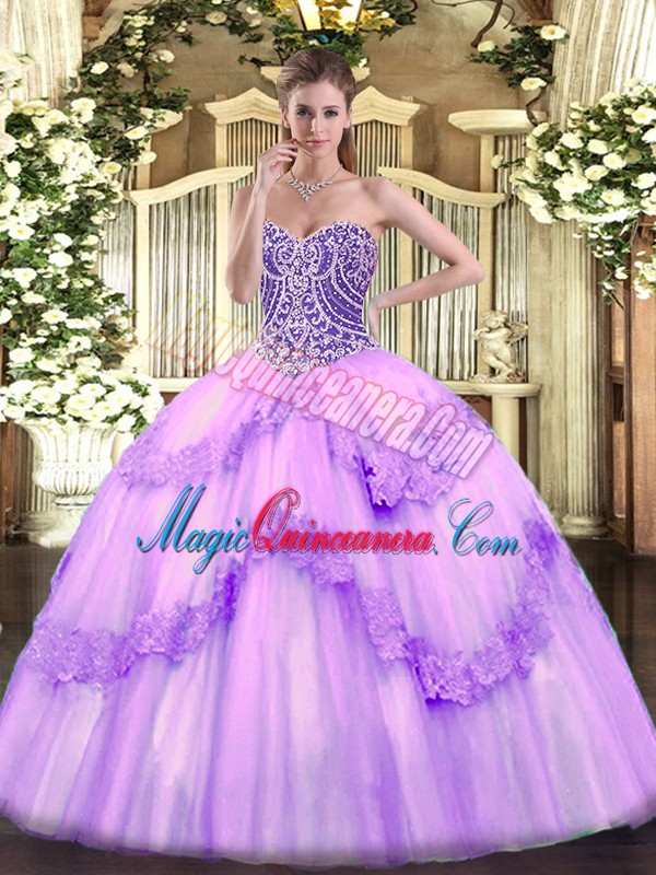 , Fabulous Floor Length Lavender Quinceanera Gown Sweetheart Sleeveless Lace Up