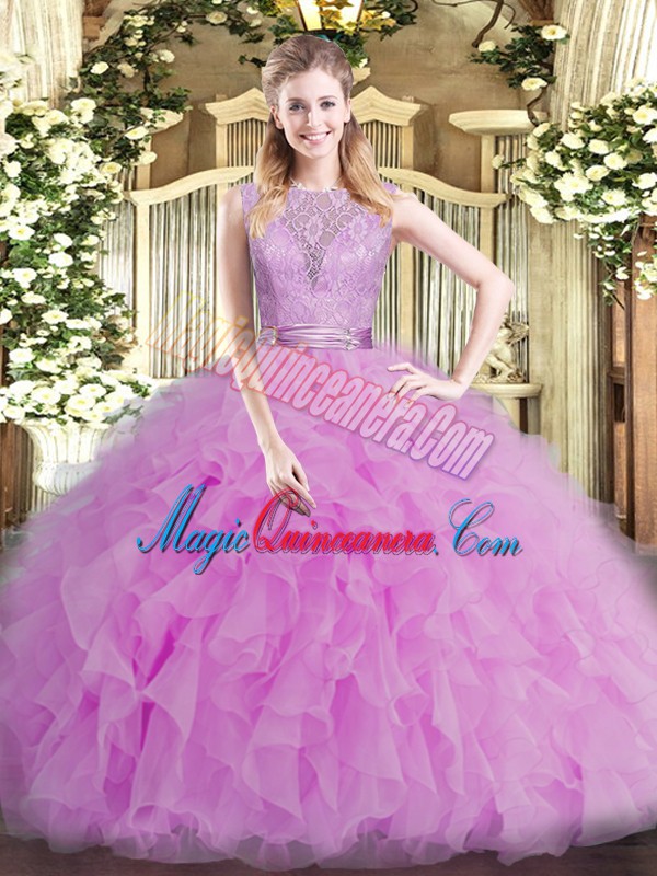 Fabulous Lilac Scoop Neckline Beading and Ruffles Sweet 16 Dress Sleeveless Backless
