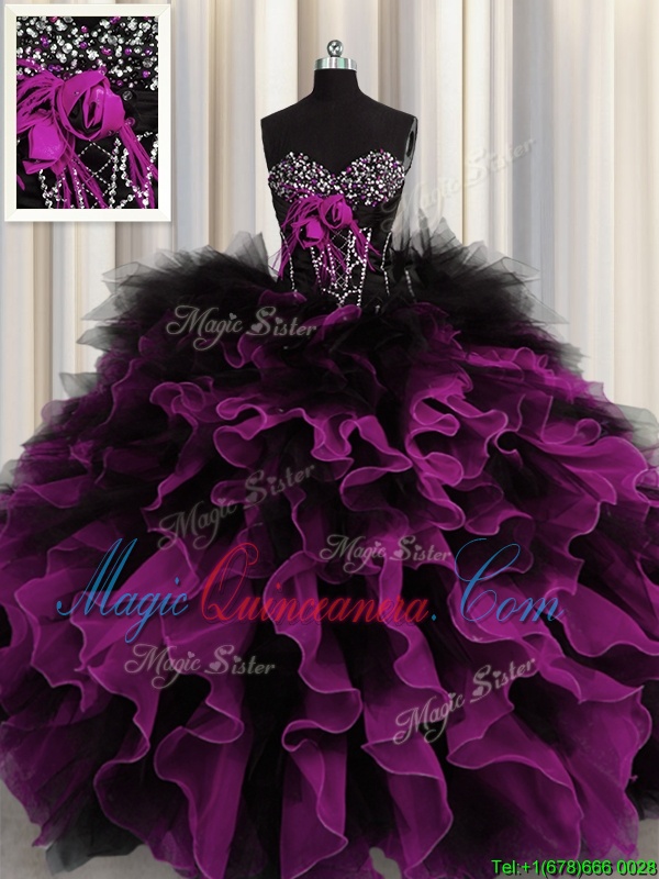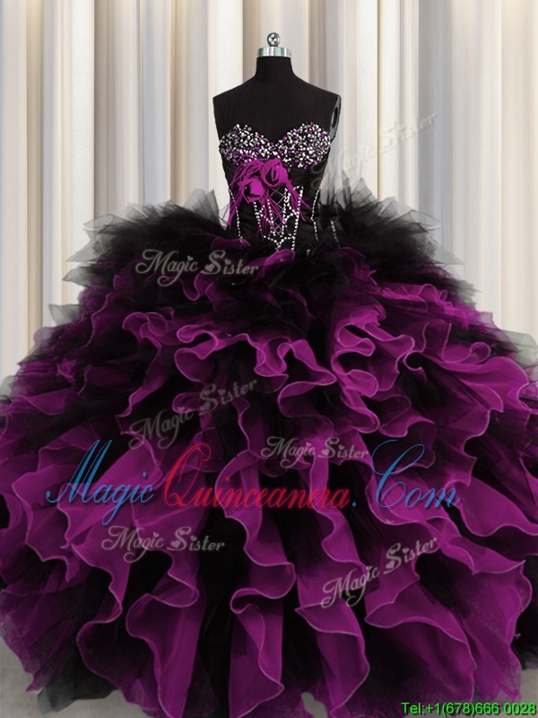 Fabulous Multi-color Sleeveless Floor Length Beading and Ruffles Lace Up Sweet 16 Dresses - Magic Quinceanera