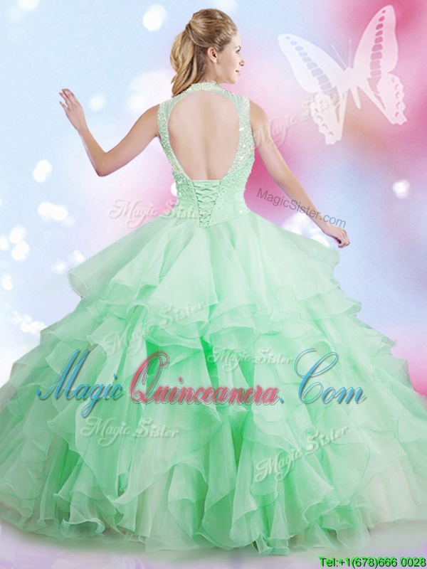 , Fabulous Tulle Sleeveless Floor Length Ball Gown Prom Dress and Beading and Ruffles