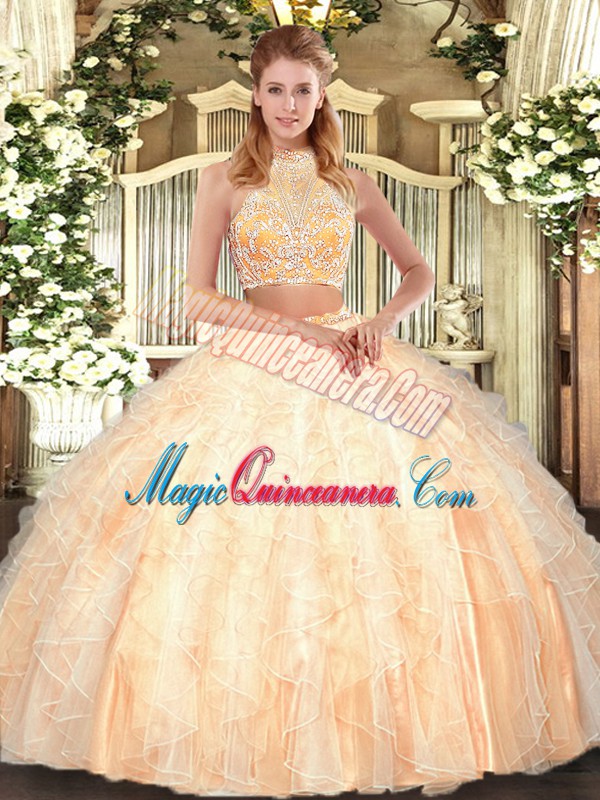 , Fabulous Tulle Sleeveless Floor Length Ball Gown Prom Dress and Beading and Ruffles