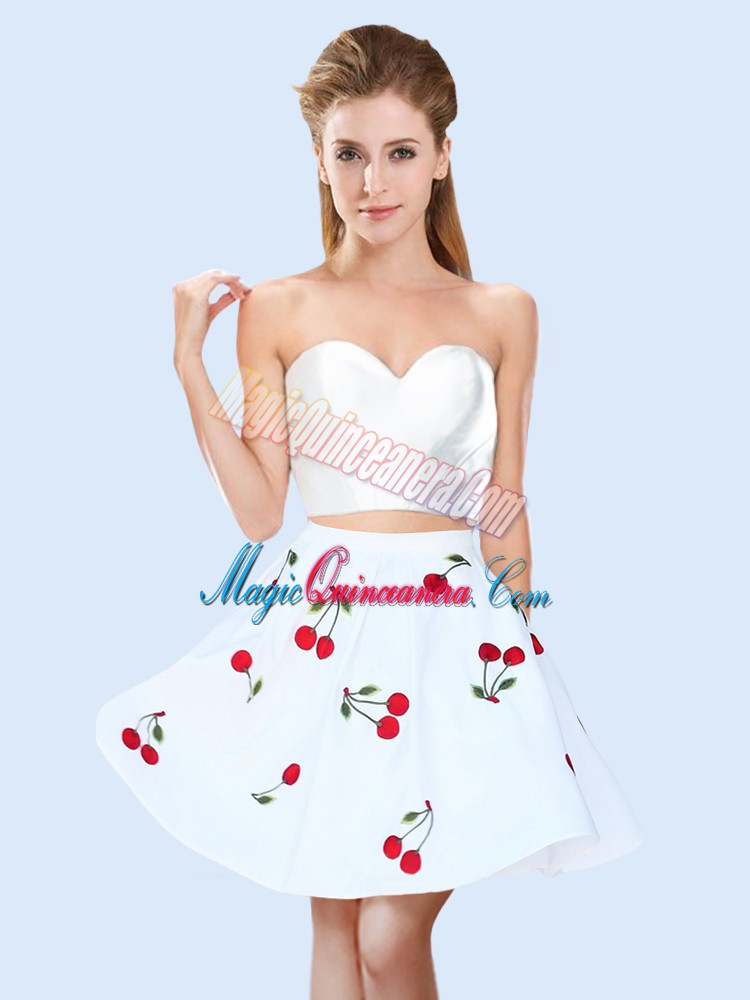 , Fabulous White Lace Up Dama Dress for Quinceanera Pattern Sleeveless Mini Length