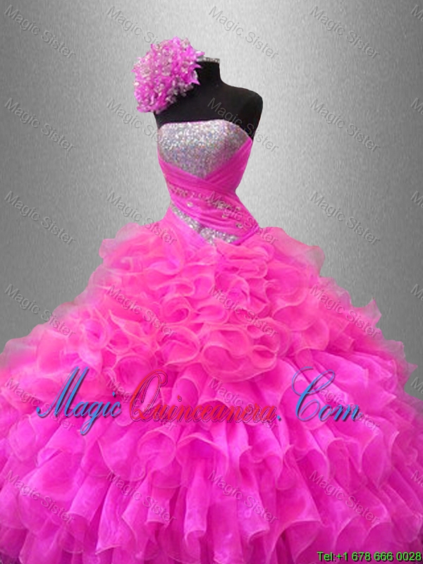 strapless hot pink quinceanera gown dresses with beading,