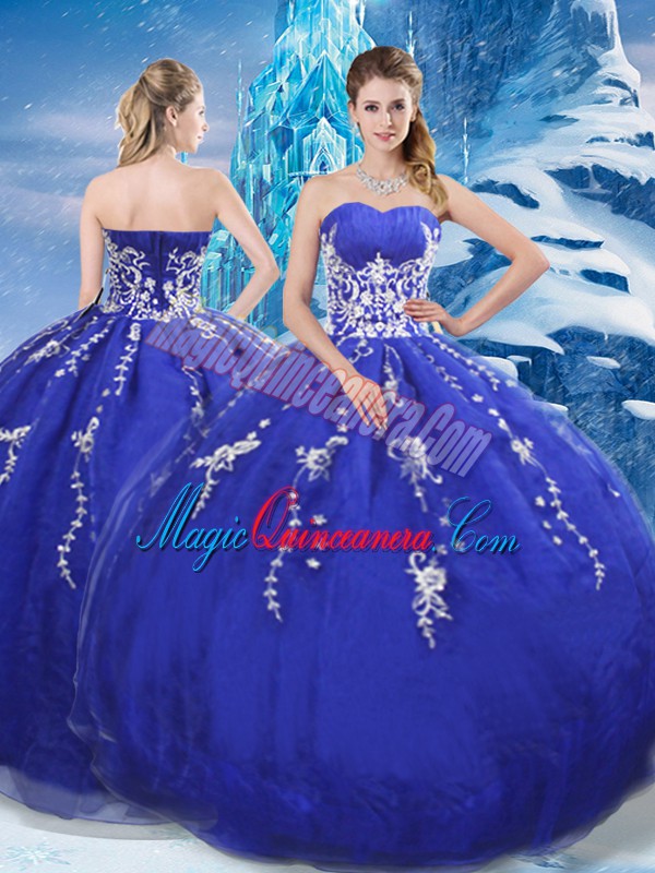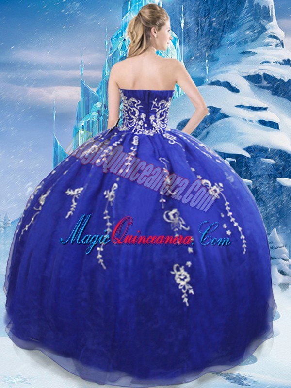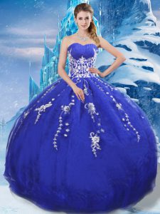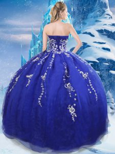 Fancy Appliques Sweet 16 Dresses Blue Lace Up Sleeveless Floor Length