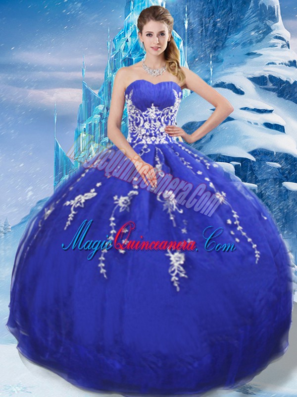 , Fancy Appliques Sweet 16 Dresses Blue Lace Up Sleeveless Floor Length