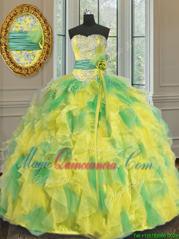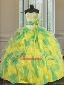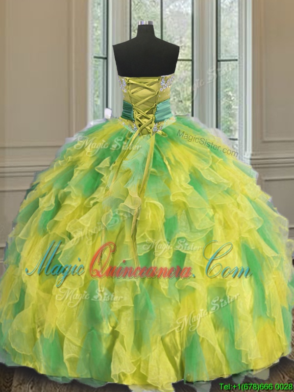 Fancy Ball Gowns Quinceanera Dress Multi-color Halter Top Organza Sleeveless Floor Length Lace Up