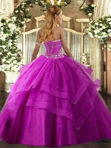 Fancy Fuchsia Sleeveless Beading and Ruffled Layers Floor Length Sweet 16 Dress