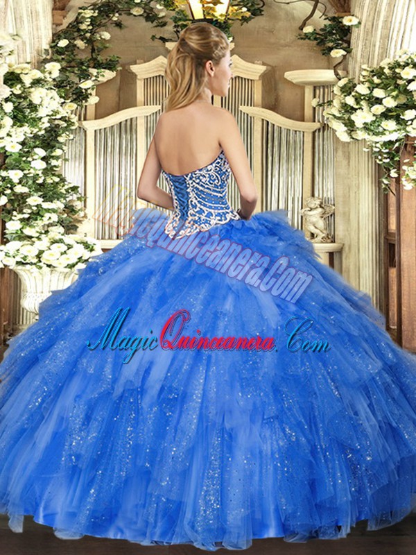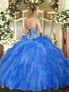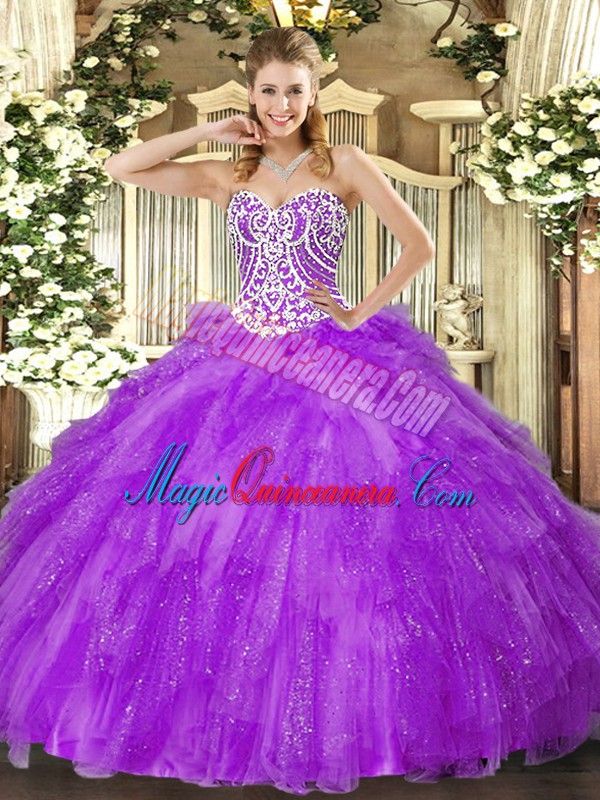 Fancy Lavender Lace Up Sweetheart Beading and Ruffles Quinceanera Dresses Tulle Sleeveless