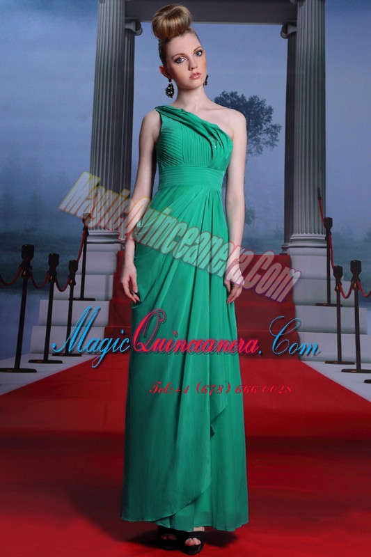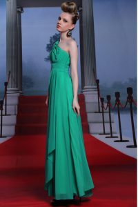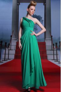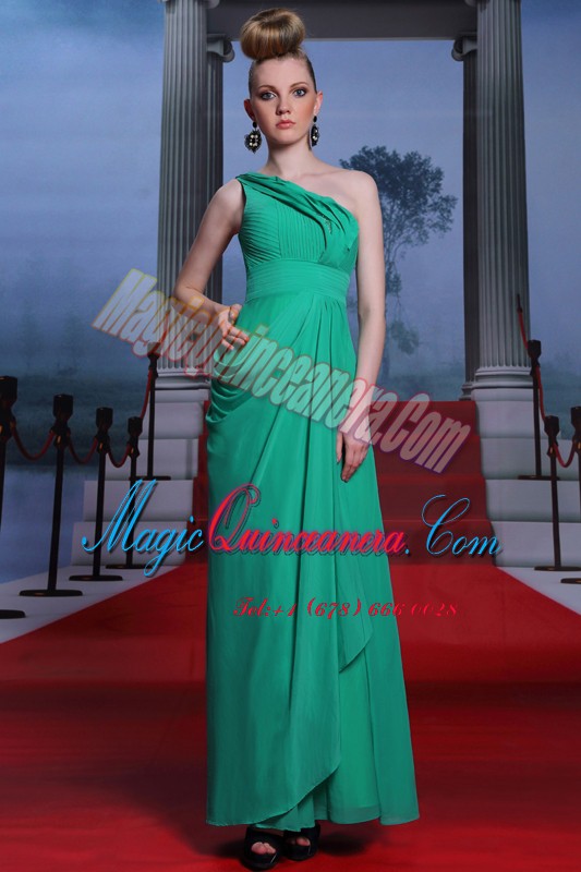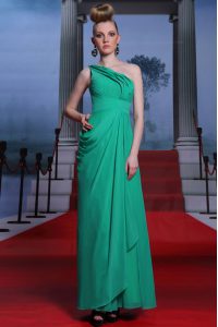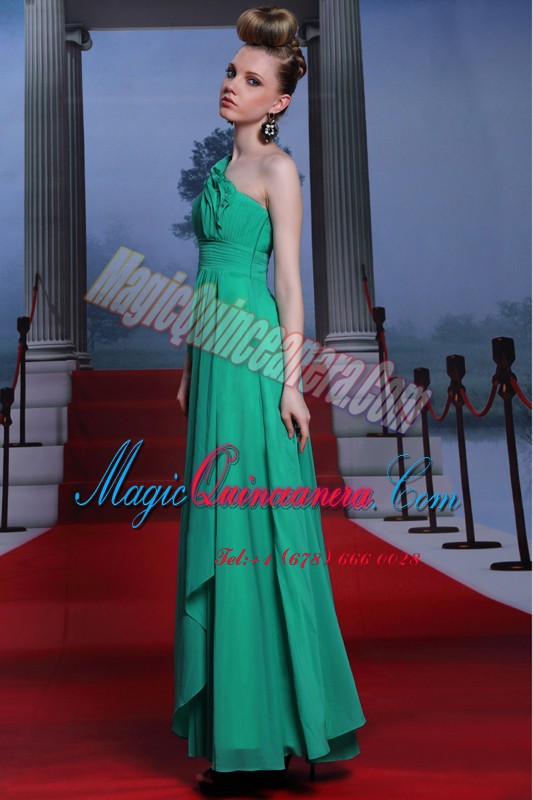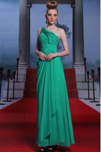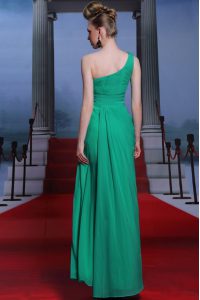 Fancy One Shoulder Floor Length Side Zipper Prom Evening Gown Turquoise for Prom and Party with Beading and Ruching