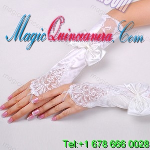 , Fancy Satin Fingerless Elbow Length With Lace Bridal Gloves