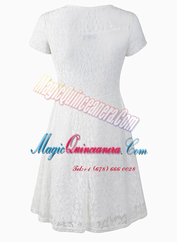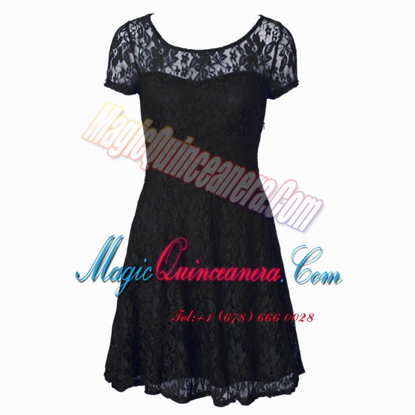 Fancy Scoop Black Side Zipper Mother Of The Bride Dress Lace Short Sleeves Tea Length