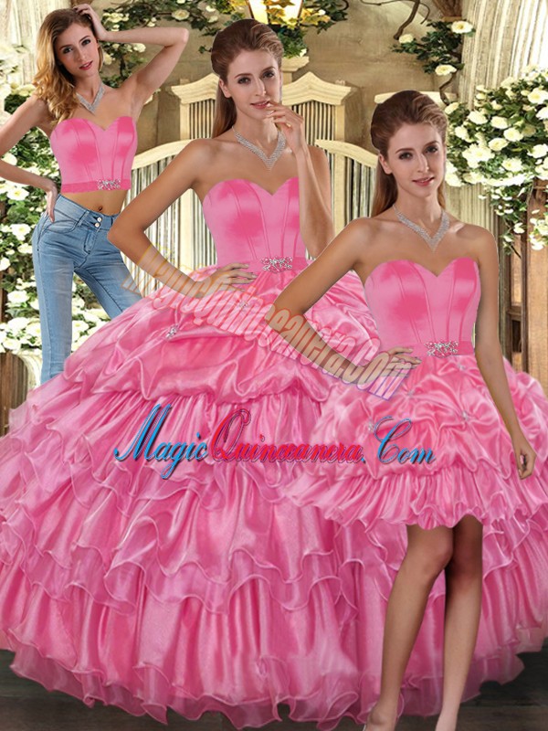Fancy Sleeveless Ruffled Layers and Pick Ups Lace Up Quinceanera Dresses
