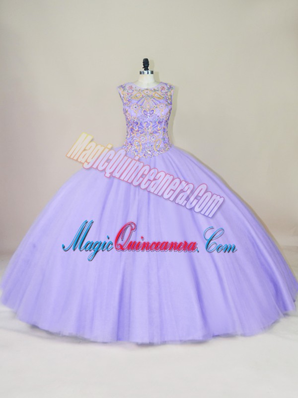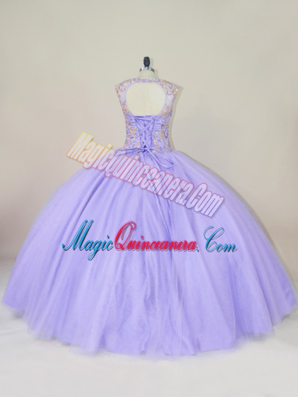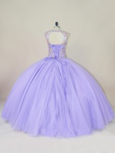 , Fantastic Lavender Lace Up Ball Gown Prom Dress Beading Sleeveless Floor Length
