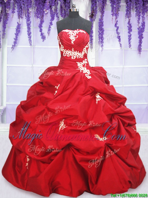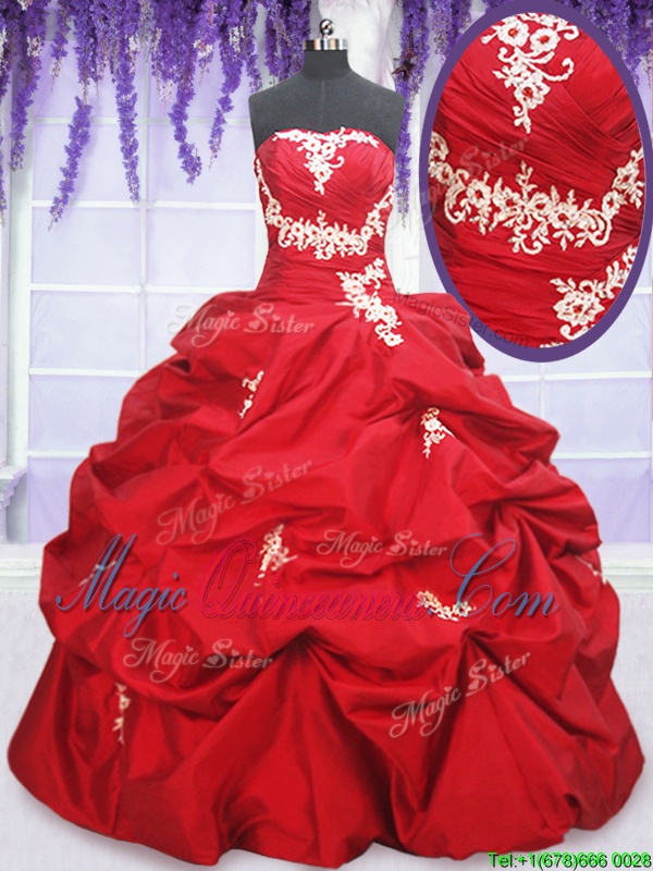 Fantastic Pick Ups Red Sleeveless Taffeta Lace Up Sweet 16 Dress for Military Ball and Sweet 16 and Quinceanera