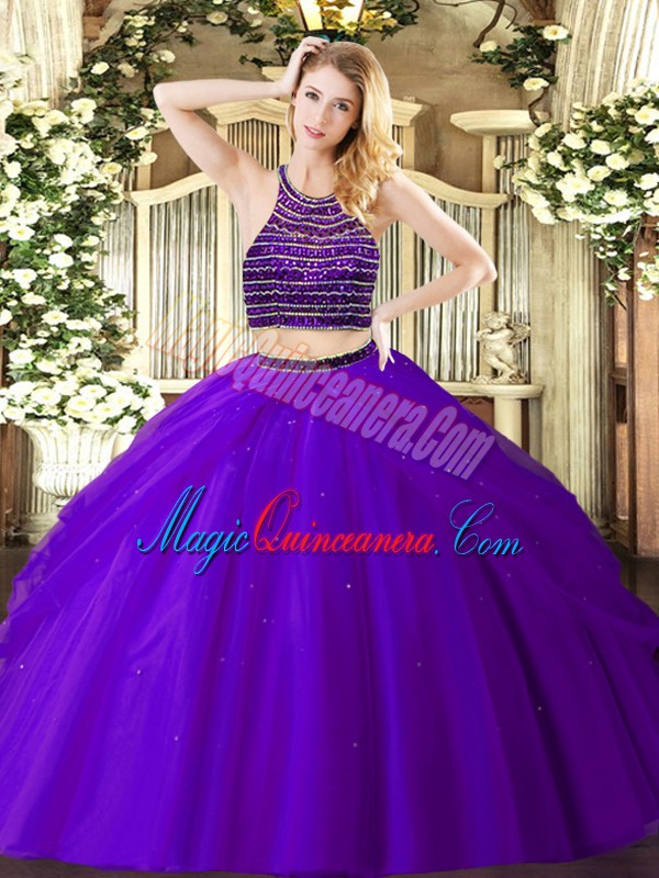 , Fantastic Purple Sleeveless Beading and Ruching Floor Length Vestidos de Quinceanera