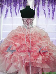 Fantastic Red Organza Lace Up Sweetheart Sleeveless Floor Length Quinceanera Gown Beading and Ruffles