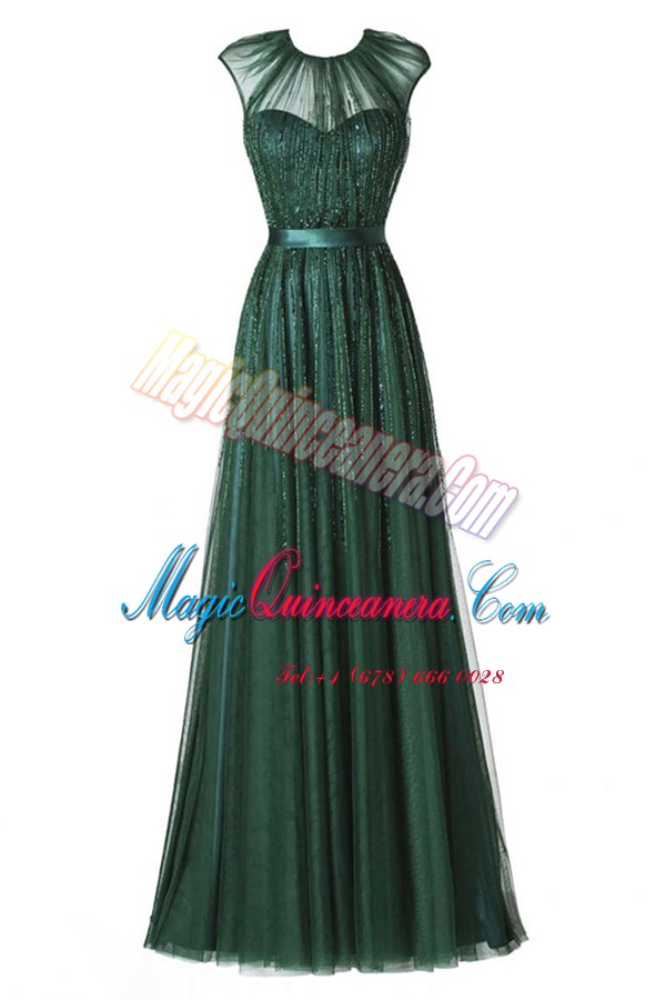 Fantastic Scoop Beading and Pleated Mother of the Bride Dress Dark Green Zipper Cap Sleeves Floor Length