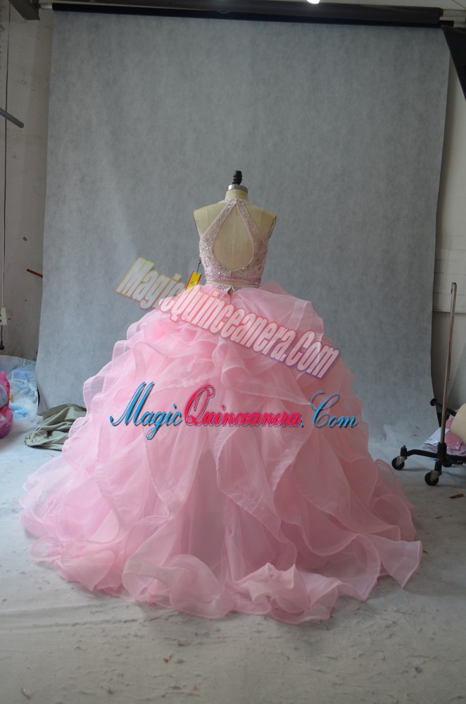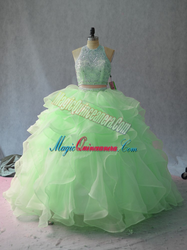 Fantastic Two Pieces Sleeveless Apple Green Sweet 16 Dress Backless