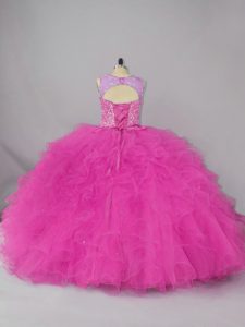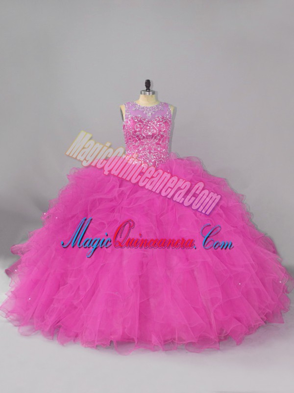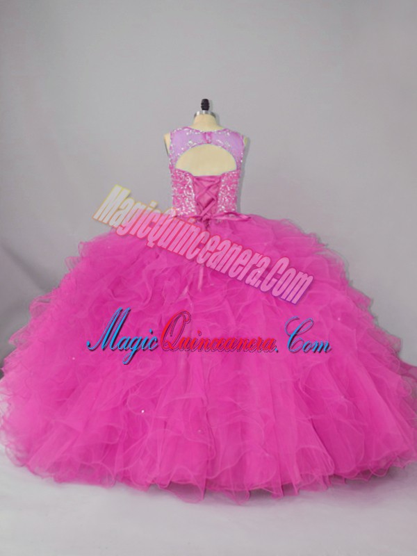 Fashion Fuchsia Sleeveless Lace Lace Up Quinceanera Dresses for Sweet 16 and Quinceanera