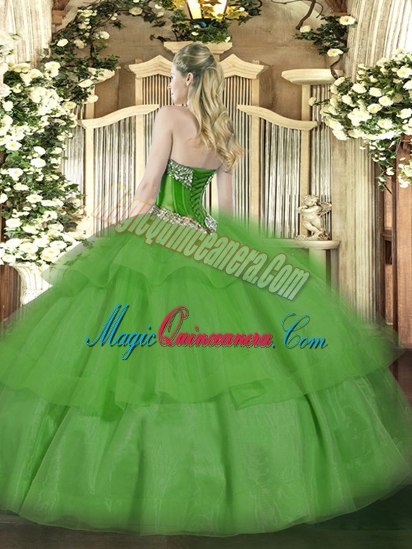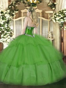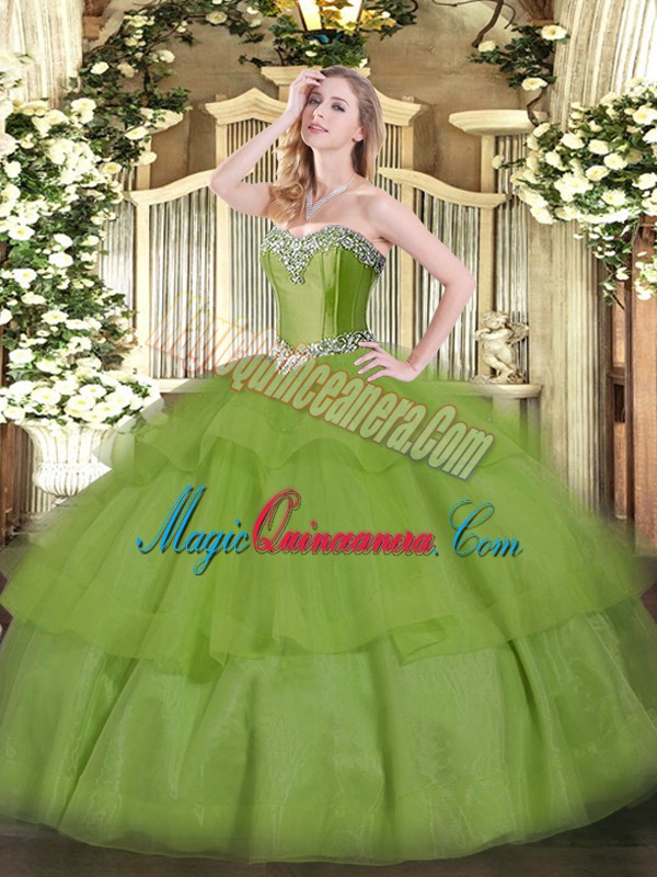 Fashion Olive Green Ball Gowns Tulle Sweetheart Sleeveless Beading and Ruffled Layers Floor Length Lace Up Sweet 16 Quinceanera Dress