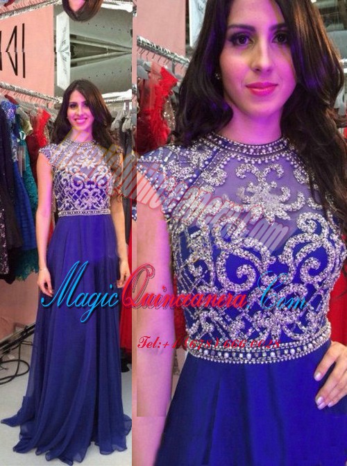 Fashion Royal Blue Sleeveless Chiffon Zipper Mother Of The Bride Dress for Prom and Party