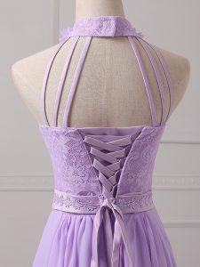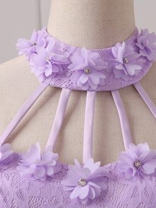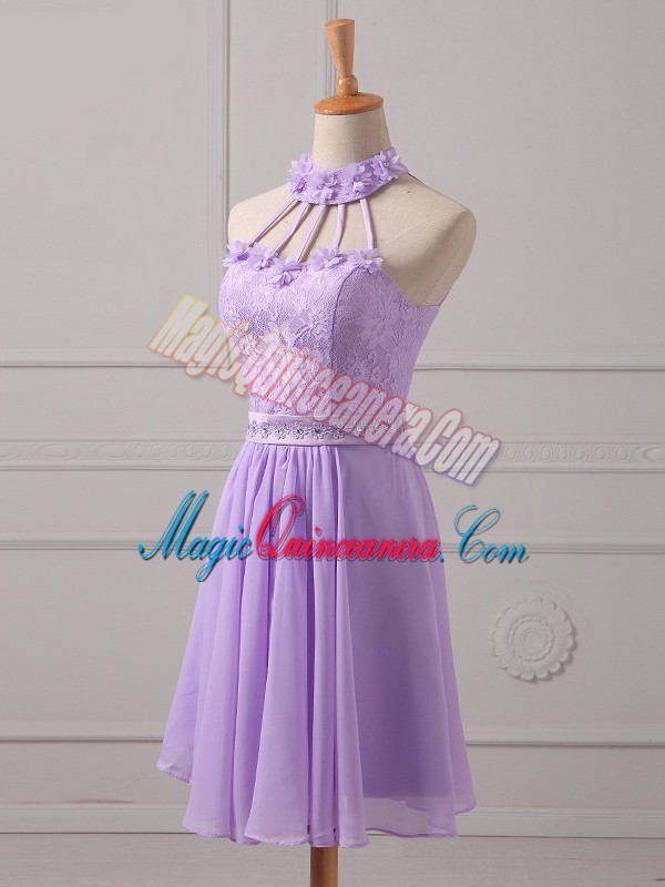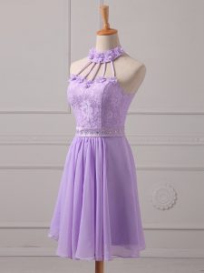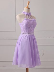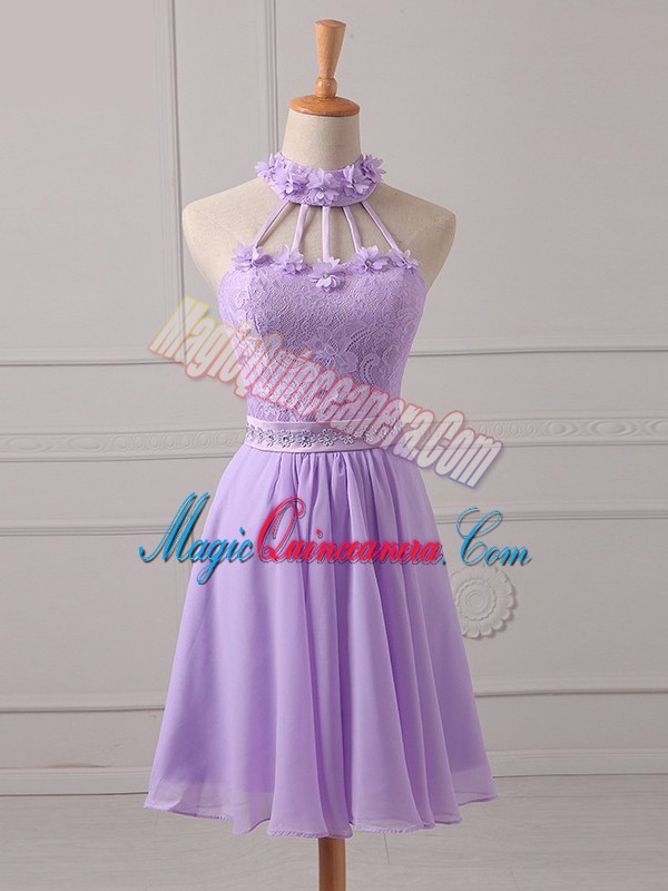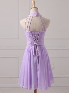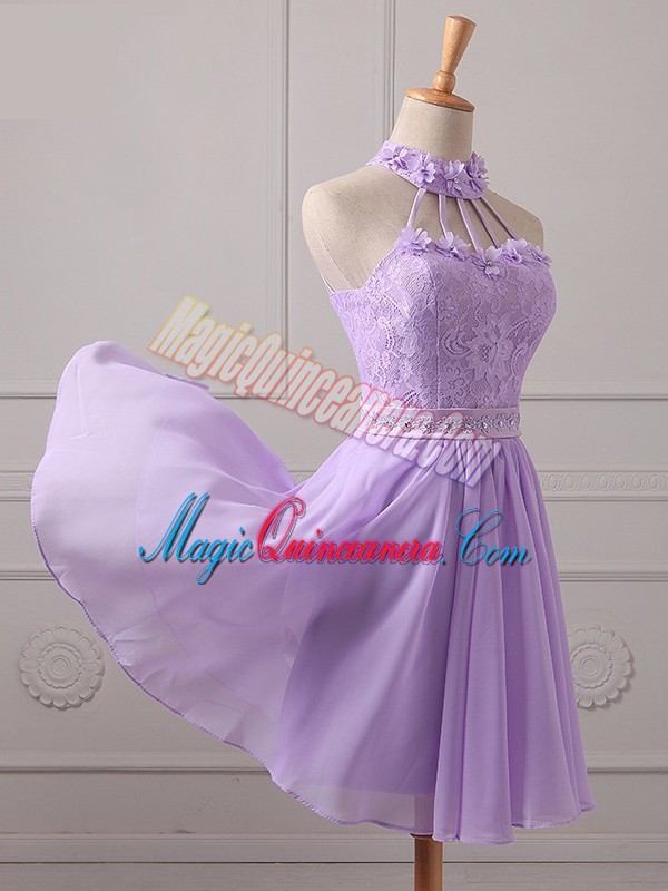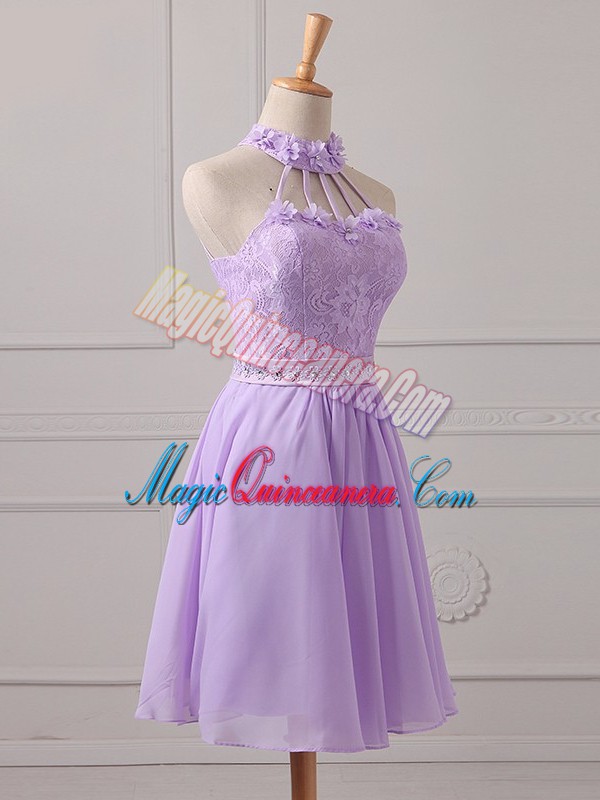 , Fashion Sleeveless Lace Up Mini Length Lace and Appliques Damas Dress