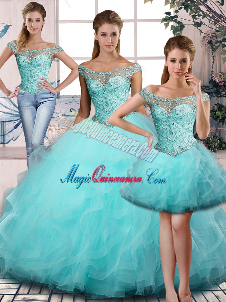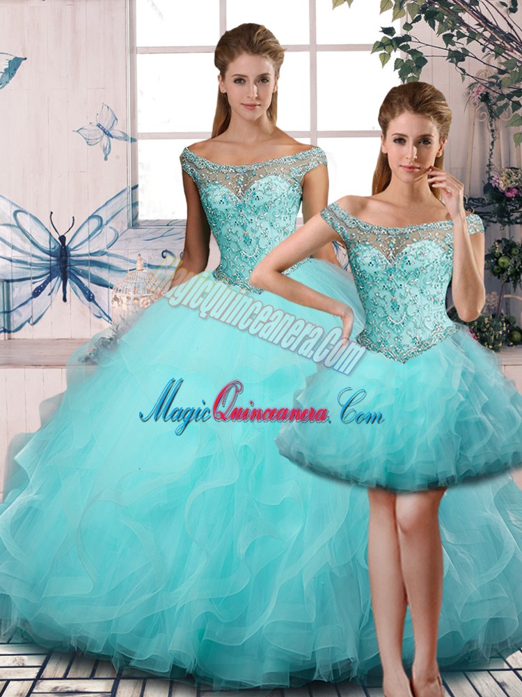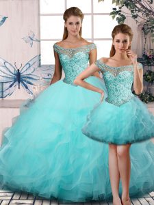 , Fashion Tulle Sleeveless Quinceanera Dresses and Beading and Ruffles