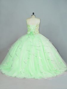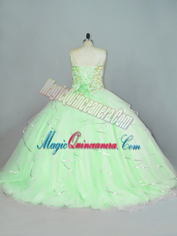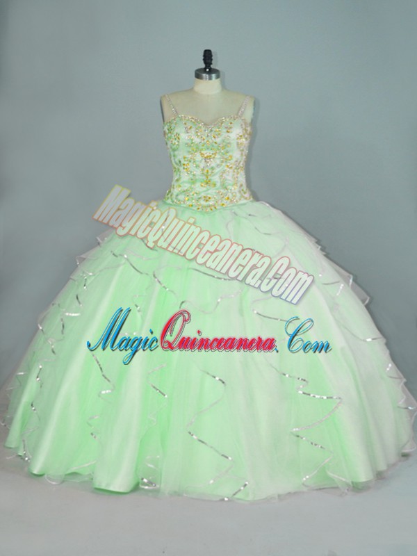, Fashionable Apple Green Straps Lace Up Beading and Ruffles Sweet 16 Dress Sleeveless