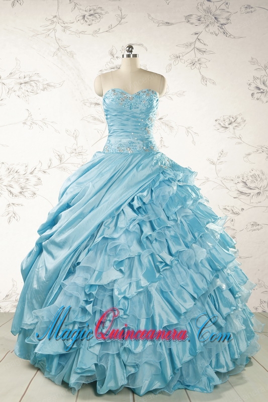 , Fashionable Beading Aqua Blue Quinceanera Dresses for 2015