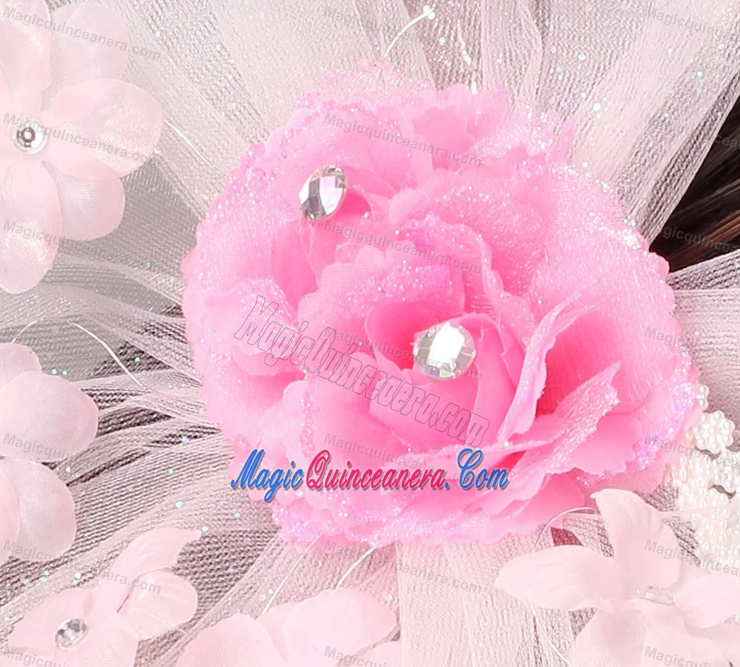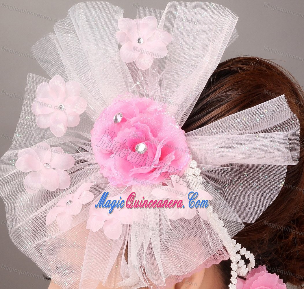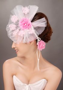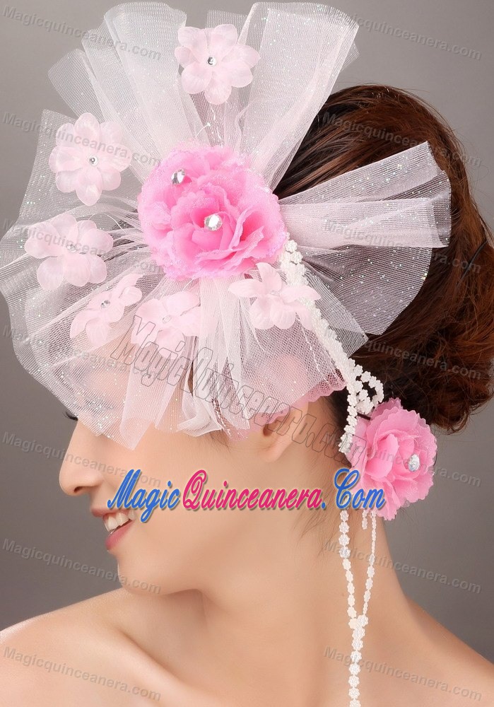 Fashionable Light Pink Tulle Hand Made Flowers Beading Fascinators For Party