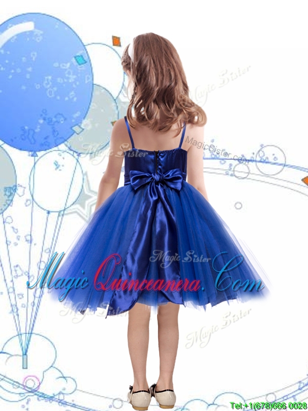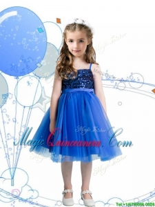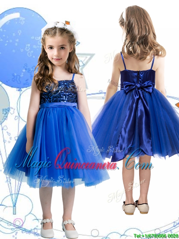 Fashionable Spaghetti Straps Royal Blue Little Girl Pageant Dress with Sashes and Sequins