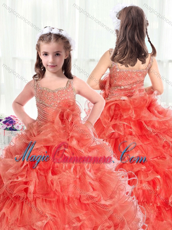 , Fashionable Straps Little Girl Pageant Dresses with Beading and Ruffles