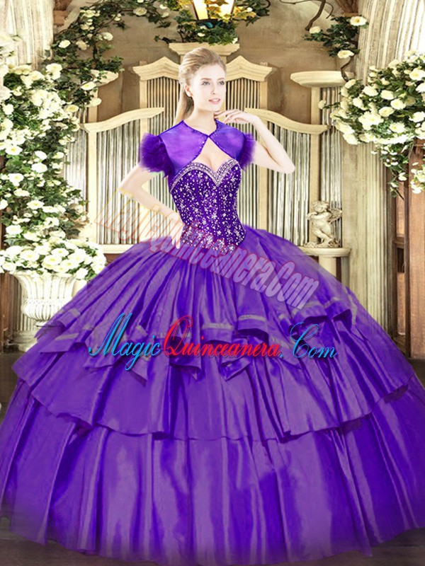 Fashionable Sweetheart Sleeveless Lace Up Sweet 16 Quinceanera Dress Purple Organza and Taffeta
